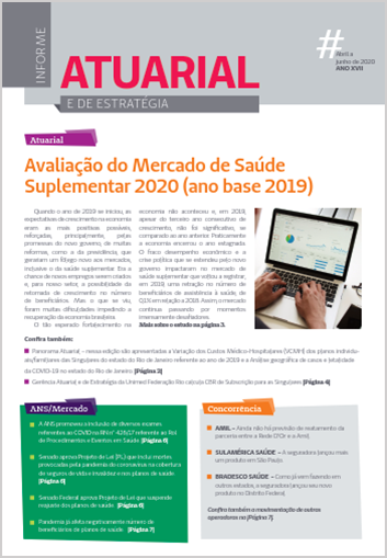 Nesta edição, entre os assuntos abordados, destacam-se os mapas de calor – na seção Panorama Atuarial, com a incidência e taxa de letalidade do novo coronavírus, no estado do Rio de Janeiro, um extrato do estudo ‘Avaliação de Mercado de Saúde 2020 (ano base 2019), além dos movimentos da concorrência.