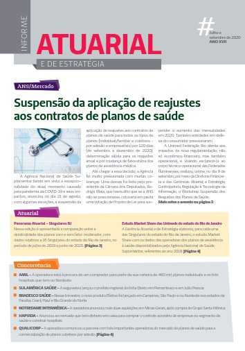 Nesta edição, entre os assuntos abordados, destacam-se a suspensão da aplicação de reajustes aos contratos de planos de saúde; a comparação entre a sinistralidade dos planos com e sem fator moderador, com dados relativos a 16 Singulares do estado do Rio de Janeiro, na seção Panorama Atuarial; e um extrato do estudo ‘Market Share das Unimeds do estado do Rio de Janeiro, ano base 2019, além dos movimentos da concorrência.