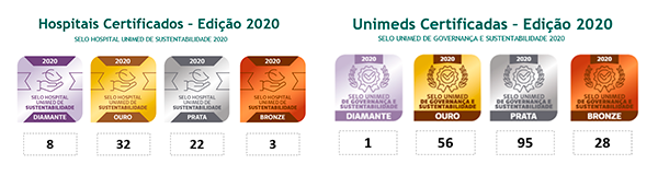 As edições 2020 do Selo Unimed de Governança e Sustentabilidade, para cooperativas e sociedades auxiliares Unimed, e Selo Hospital Unimed de Sustentabilidade, para hospitais próprios Unimed, superaram o número de participantes das últimas três, contando com 180 Unimeds e 65 hospitais próprios certificados. Além disso, houve recorde de inscrições com 214 cooperativas e 77 hospitais.