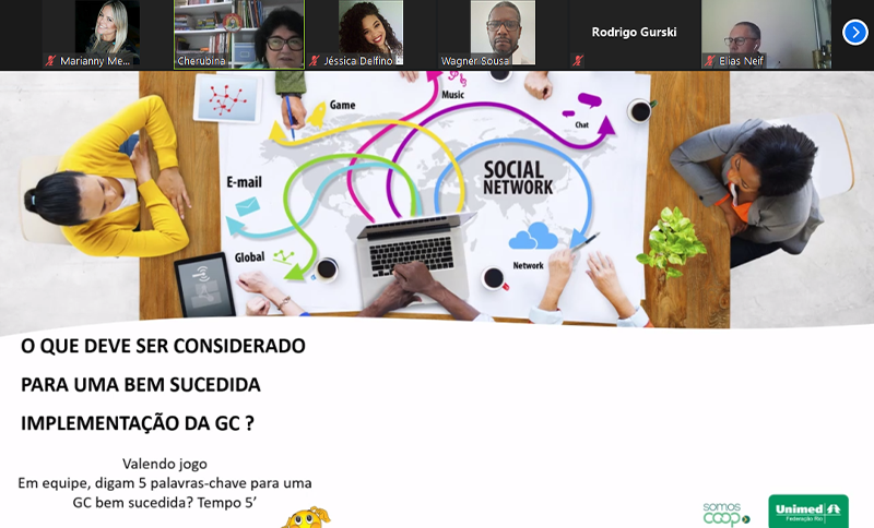 Nos dias 4 e 5 de março, a Federação Rio, em parceria com o Sescoop, realizou a capacitação on-line Resultados e Autodesenvolvimento na gestão do conhecimento, com a facilitadora Anna Cherubina Scofano, para 20 profissionais da cooperativa e das Unimeds Barra Mansa, Petrópolis, Três Rios e Volta Redonda.