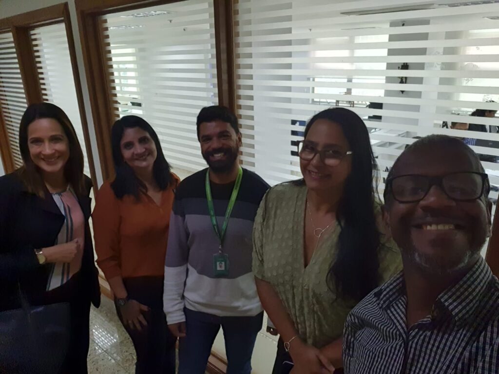 Recém-chegadas ao cooperativismo e ao Sistema Unimed, elas foram recebidas e auxiliadas nesta integração pela gerente, o coordenador e o analista de Gestão de Pessoas da Federação, Claudia Reis, Wagner Sousa e Marcos Guimarães.