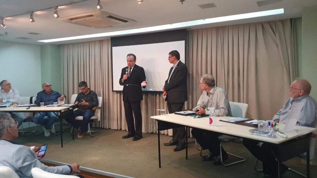 O deputado federal Hugo Leal, autor do Projeto de Lei – PL 815/2022, que prevê a “reorganização de sociedades cooperativas, altera dispositivos da Lei nº 5.764, de 16 de dezembro de 1971, e dá outras providências”, fez uma apresentação sobre o tema junto com o presidente da OCB/RJ, Vinicius Mesquita, durante a reunião do Conselho Federativo, na sede da Federação Rio, em 27 de maio, para os conselheiros e a Diretoria Executiva da cooperativa.