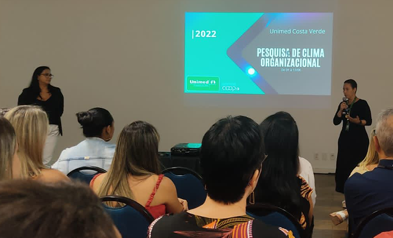 Em 28 de maio, a gerente de Gestão de Pessoas da Federação Rio, e a analista de RH, Claudia Reis e Sheila Nascimento, respectivamente, apresentaram para os diretores da Unimed Costa Verde Paulo Wesley Bragança, Roberto Akiyama, Antônio Genovez, Adão Guimarães, aos gestores e colaboradores o objetivo e as vantagens da aplicação da Pesquisa de Clima Organizacional, na cooperativa, para potencializar a necessidade da participação de todos e mantendo a confidencialidade de cada etapa do processo.