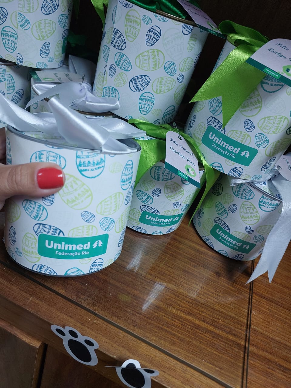 No dia 5 de abril, os colaboradores foram recebidos na Federação com uma decoração divertida e encantadora, com direito a patinhas de coelhos espalhadas pelos andares, que levavam a uma doce surpresa. Na “fantástica fábrica dos chocolates” a equipe de GP preparou uma latinha sustentável recheada de doces.