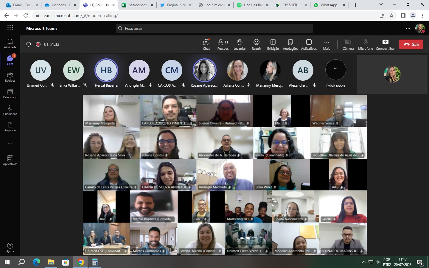 Na manhã do dia 20 de julho, aconteceu a reunião conjunta do Grupo Permanente de Atendimento (GPA) e o Grupo Estadual de Comunicação, Marketing e Mídias Digitais, em formato virtual, para mais de 70 representantes das Unimeds fluminenses. O objetivo do encontro foi alinhar as questões relacionadas à Estação Unimed Ferj, que será disponibilizada nas lojas físicas de atendimento ao cliente Unimed, no estado.