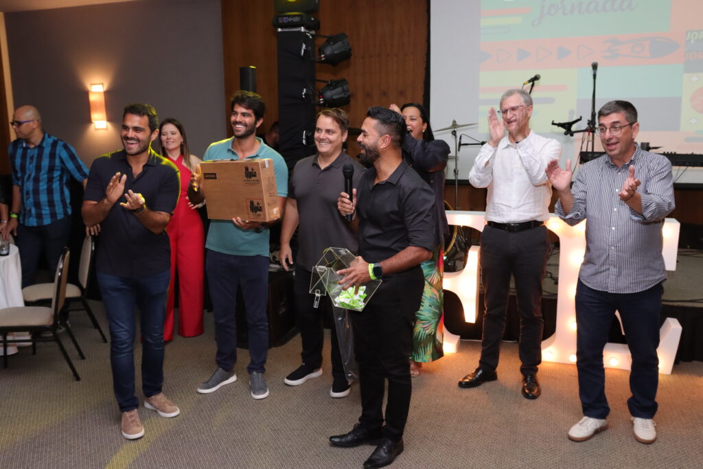 Para brindar a todos os colaboradores que contribuíram, nos últimos 365 dias, dezembro foi um mês de muita celebração, desde a entrega dos kits natalinos, até a festa de confraternização com jantar, banda ao vivo e sorteio de brindes.