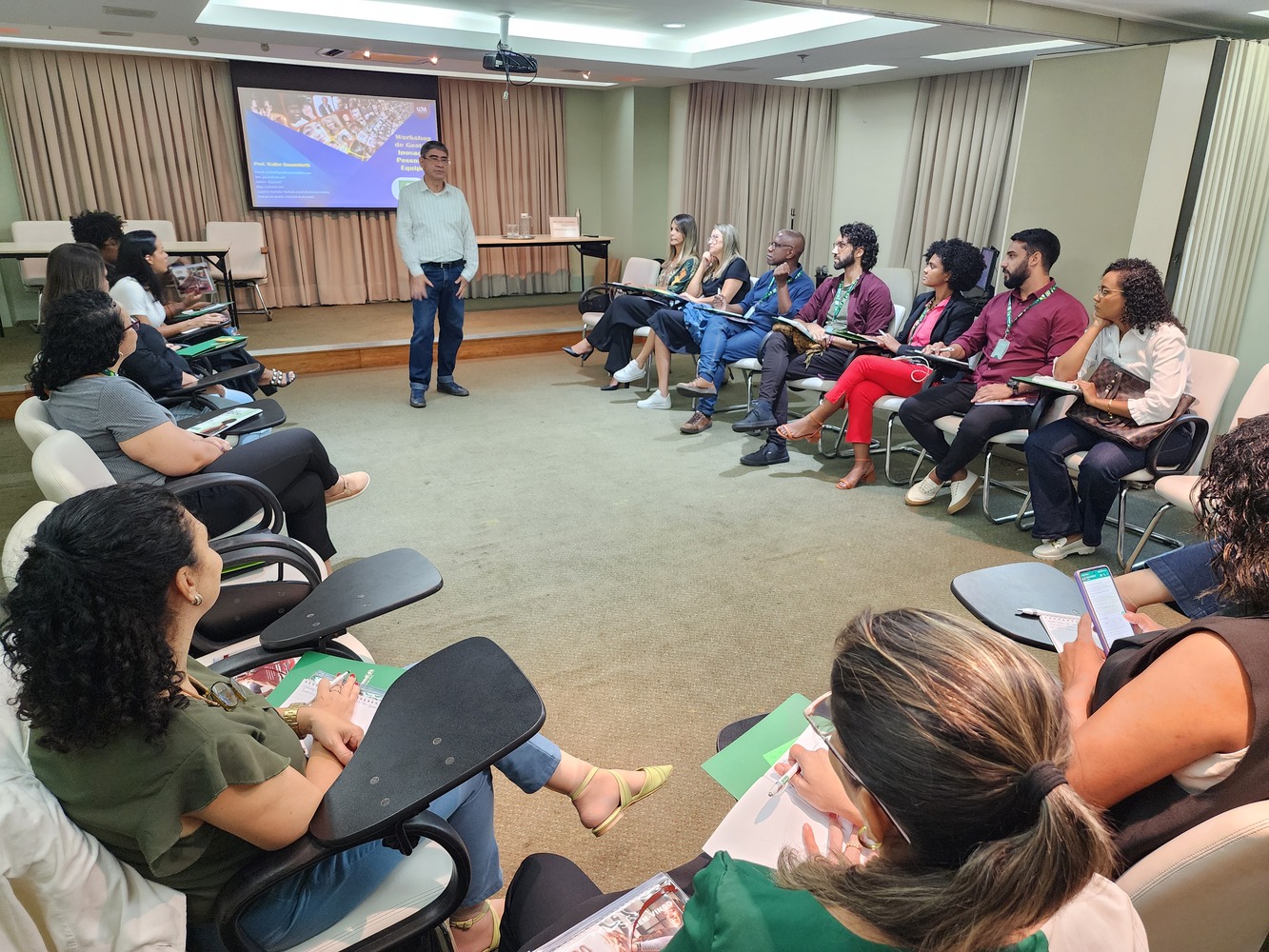 “Ações como esta são muito positivas, ainda mais da forma como foi feito. A equipe de Gestão de Pessoas levantou as necessidades ou carências e nos pediu para seguir um certo caminho, permitindo que pudéssemos colocar muitas informações e metodologias, ferramentas para facilitar a vida desses gestores e colaboradores. Dividimos o conteúdo em três partes. Na primeira, falamos sobre conceitos que são importantes para os gestores e não podem ser esquecidos. Na segunda parte, desenvolvemos um pouco sobre ferramentas e quais podemos usar para esses conceitos, transformando isso em prática. Por fim, trabalhamos as competências, a partir dos conceitos já conhecidos e como o gestor deve aplicar não só para ele, mas para a sua equipe”, explicou Gassenferth.