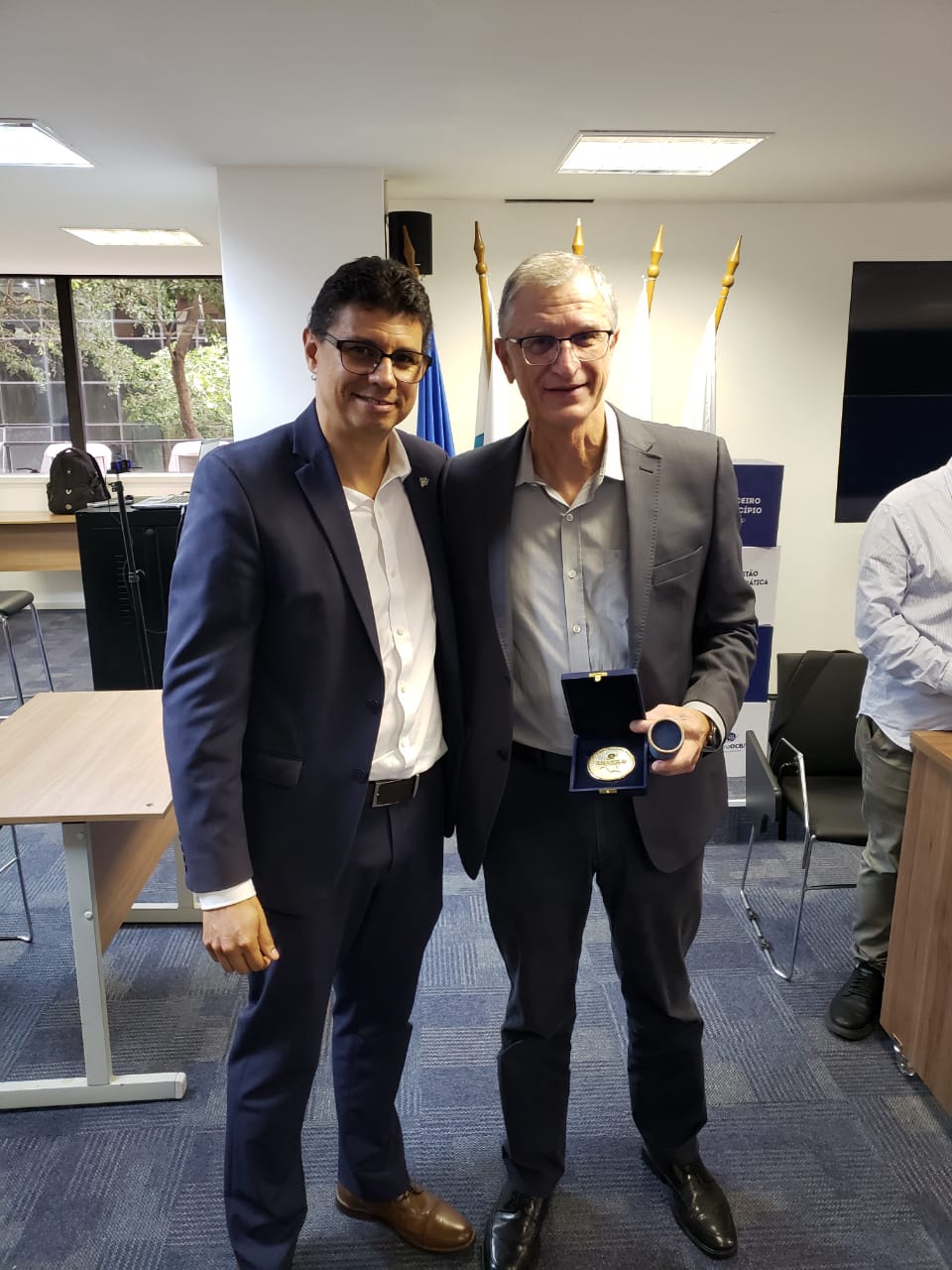 “O trabalho que vocês estão realizando deixa a gente muito feliz, muito orgulhoso de entender que a cooperação está prevalecendo. E você tem sido o construtor dessa ação, meu amigo. Então fica aqui o meu agradecimento e a nossa homenagem a você e à Unimed Ferj, com essa medalha que é um tributo ao Luiz Carlos Costa, que foi um grande colaborador nosso, presidente de cooperativa, que trabalhou pelas instituições mais humildes que nós temos no estado, que são as cooperativas de catadores. Ele teve um trabalho de destaque no cooperativismo e nos deixou durante a pandemia”, comentou Vinícius.