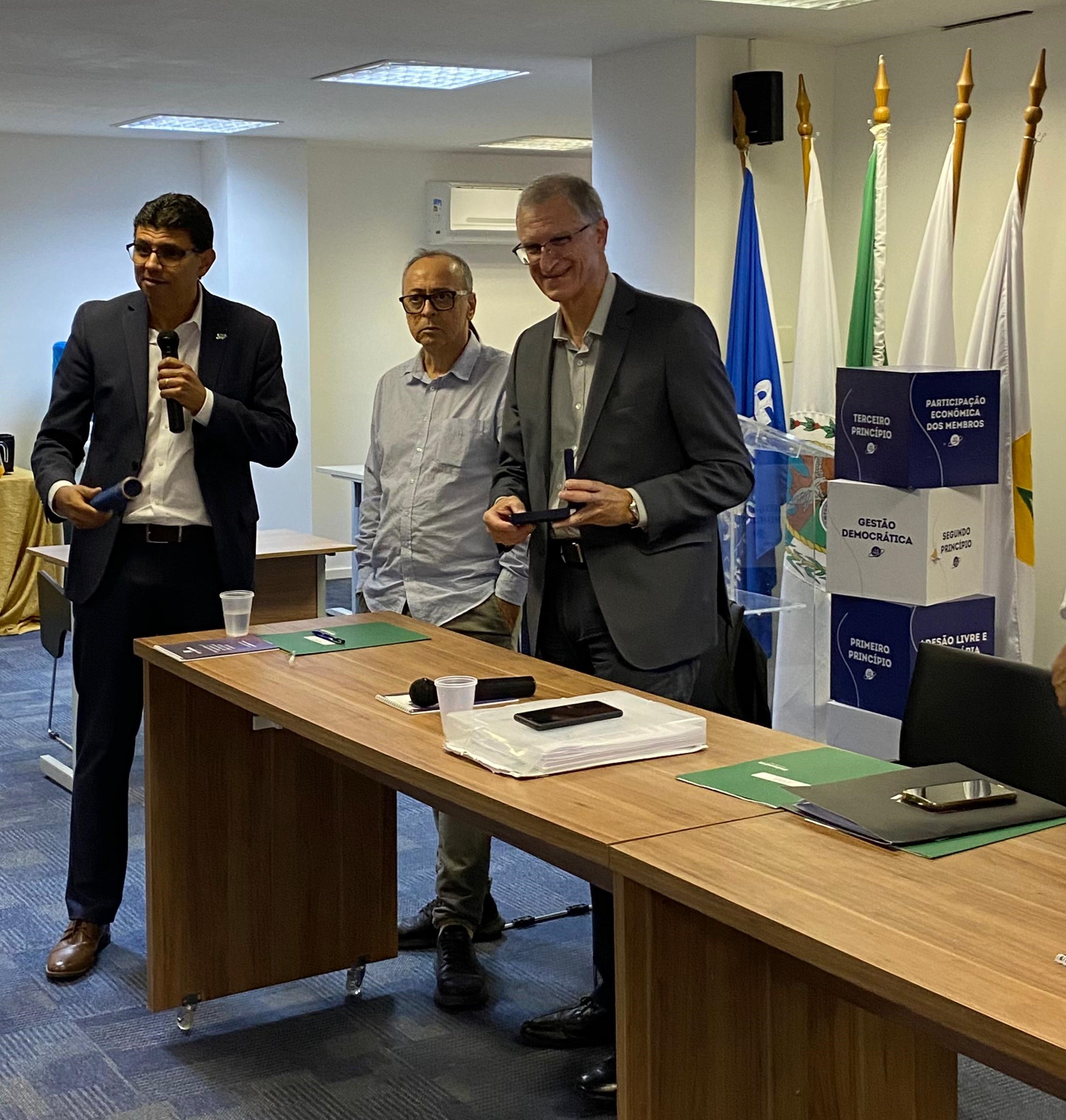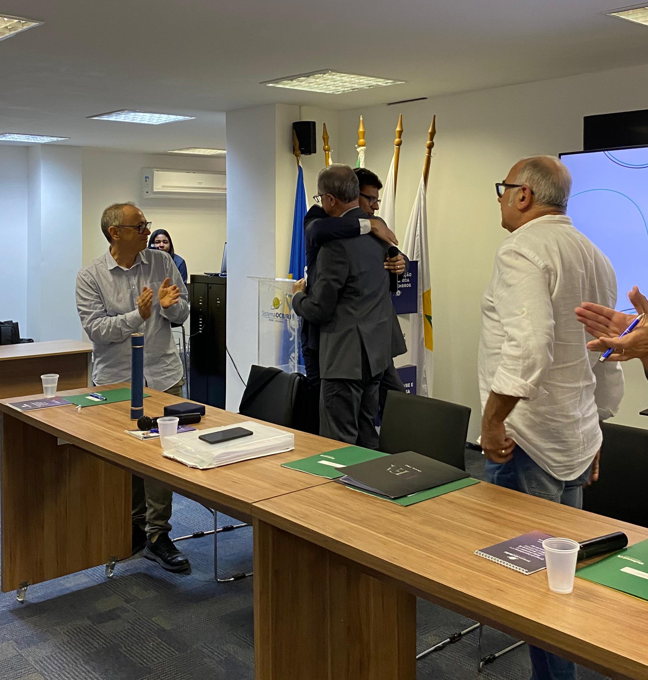 “Na última Conferência Rio Mais Coop, realizada no fim do ano passado, homenageamos as pessoas e instituições que se destacaram ao longo de 2023, em defesa do cooperativismo, buscando a unidade e a promoção das cooperativas. O presidente João Alberto foi um dos escolhidos e por motivo de viagem, não pôde comparecer ao evento. Fico muito feliz por poder entregar a medalha na presença das Unimeds pois sei o esforço pessoal que ele tem feito em prol dessa migração da carteira. Vocês têm realmente uma responsabilidade muito grande. Temos a clara percepção de que estão ajudando a manter o patamar que o cooperativismo do Rio alcançou nos últimos anos”, comentou o presidente do Sistema OCB/RJ, que também explicou a origem da medalha.