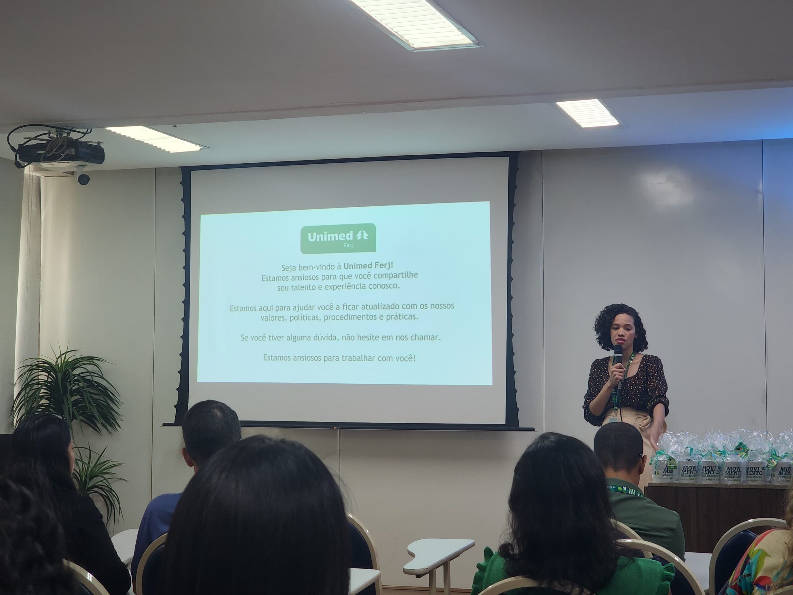 O principal objetivo desta ação foi apresentar como funciona a Unimed Ferj, o sistema das cooperativas, o nosso propósito e benefícios oferecidos. A analista de Gestão de Pessoas, Emanuelle Silva, explicou com detalhes como foi esse processo.