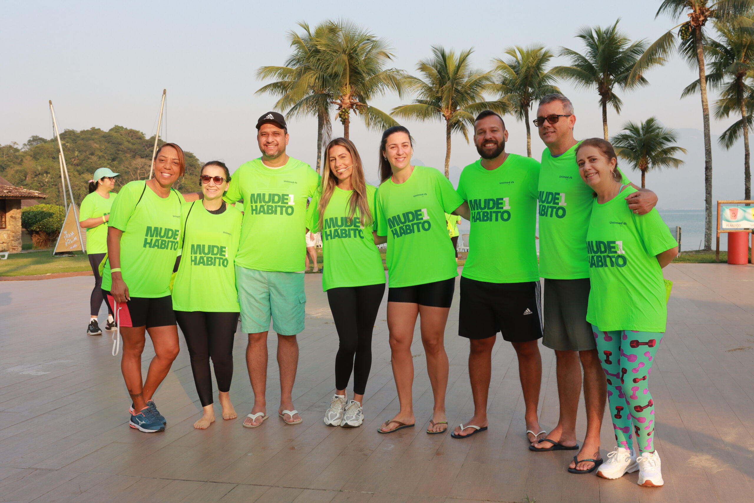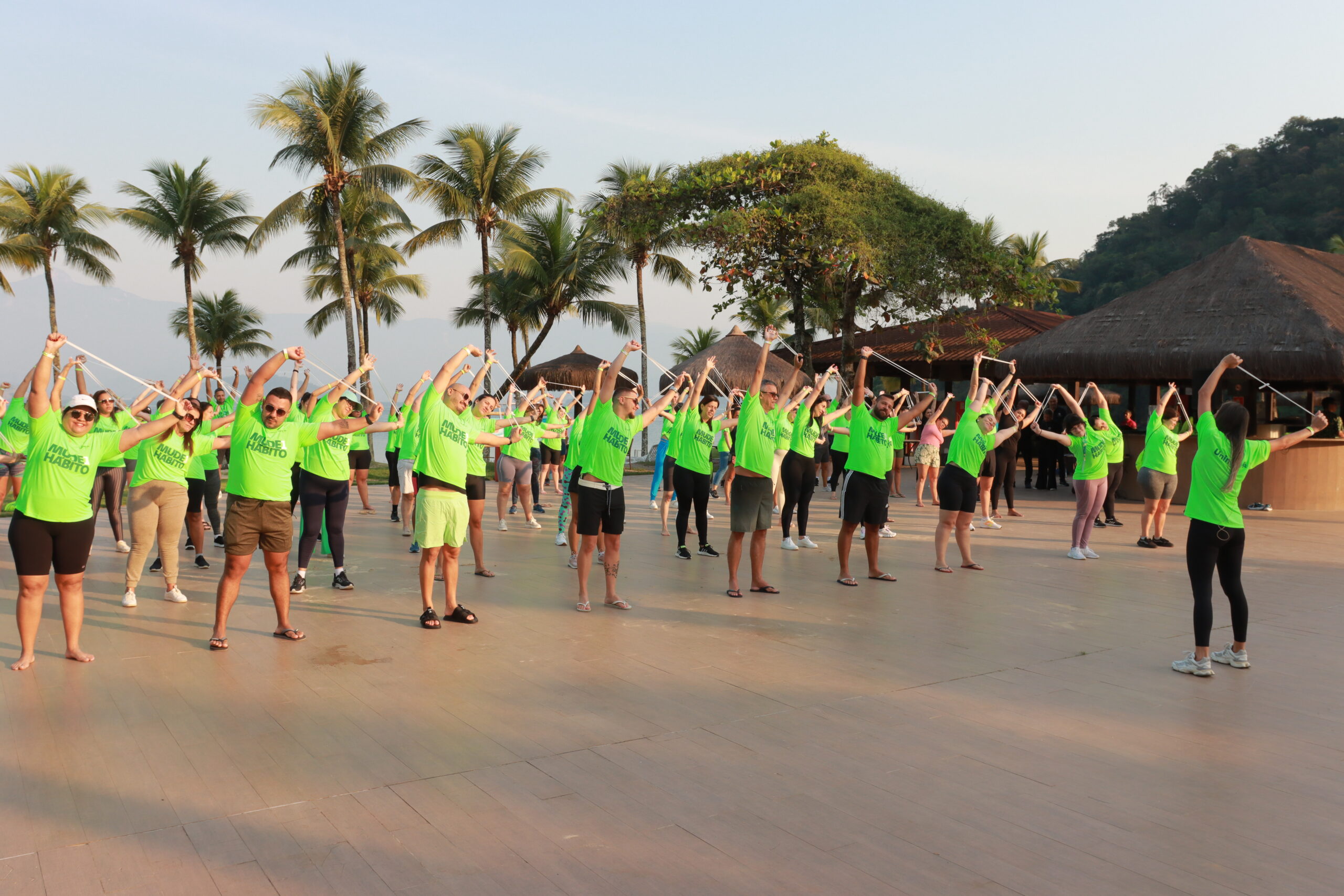 Imagine começar o dia com uma atividade ao ar livre, em um cenário paradisíaco de Angra dos Reis, com música animada e um aulão de fortalecimento dos músculos. Assim começou a manhã do dia 13 de setembro, onde o ‘Mude1Hábito’, projeto do Sistema Unimed e promovido pela Unimed Ferj, reuniu os participantes do 32° SUERJ em um ambiente ideal para a prática de exercícios.