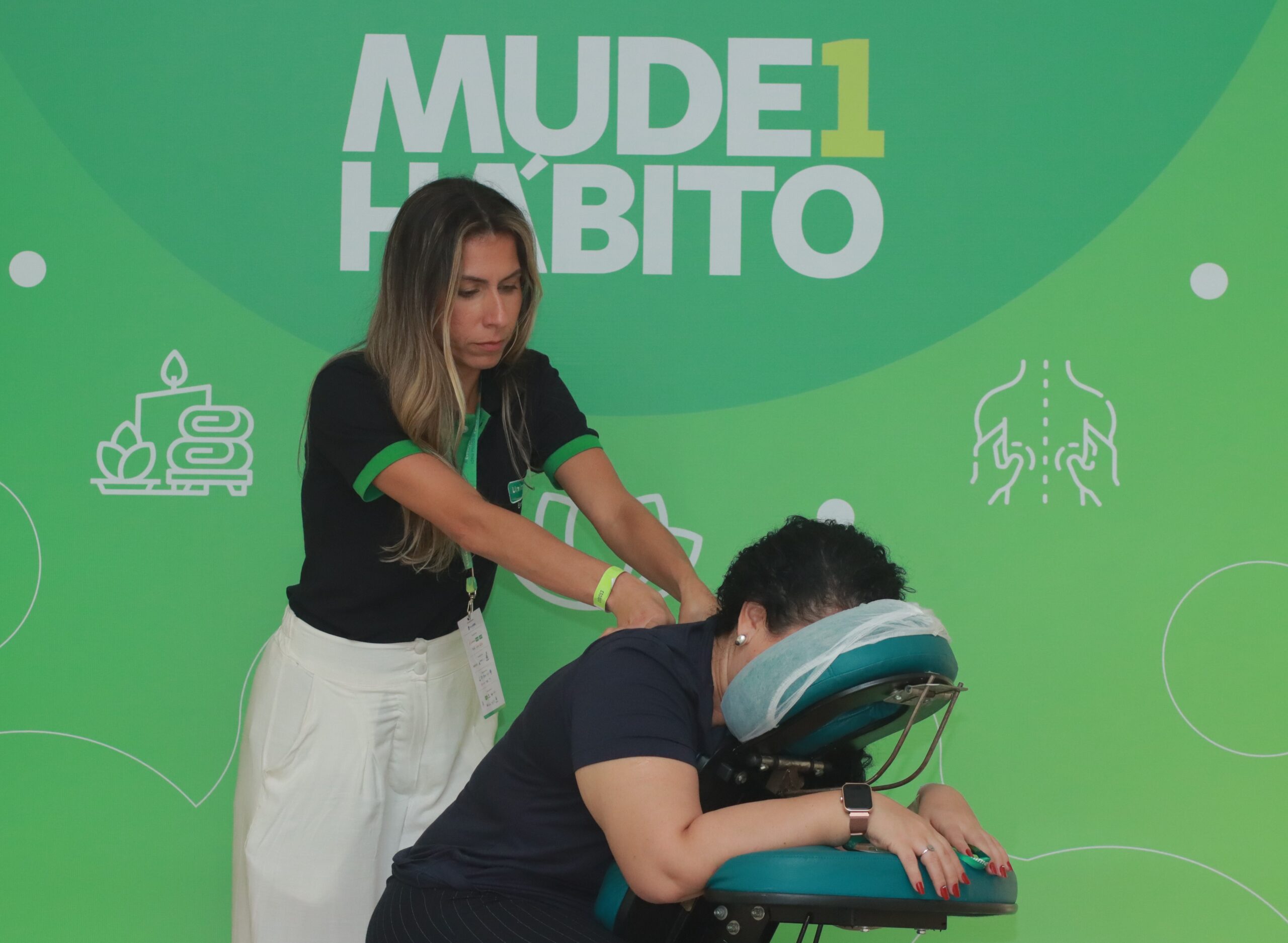 Paralelo ao projeto, o evento proporcionou um momento de descontração entre os presentes, com a distribuição especial de vales para quick massages. Durante as quatro palestras do dia 12, vales foram colados debaixo das cadeiras, e doze sortudos foram surpreendidos com uma massagem relaxante, realizada por Barreiros. As iniciativas reforçaram o compromisso com a saúde integral, oferecendo aos participantes a oportunidade de relaxar e revitalizar-se, durante um dia repleto de atividades voltadas para o bem-estar.