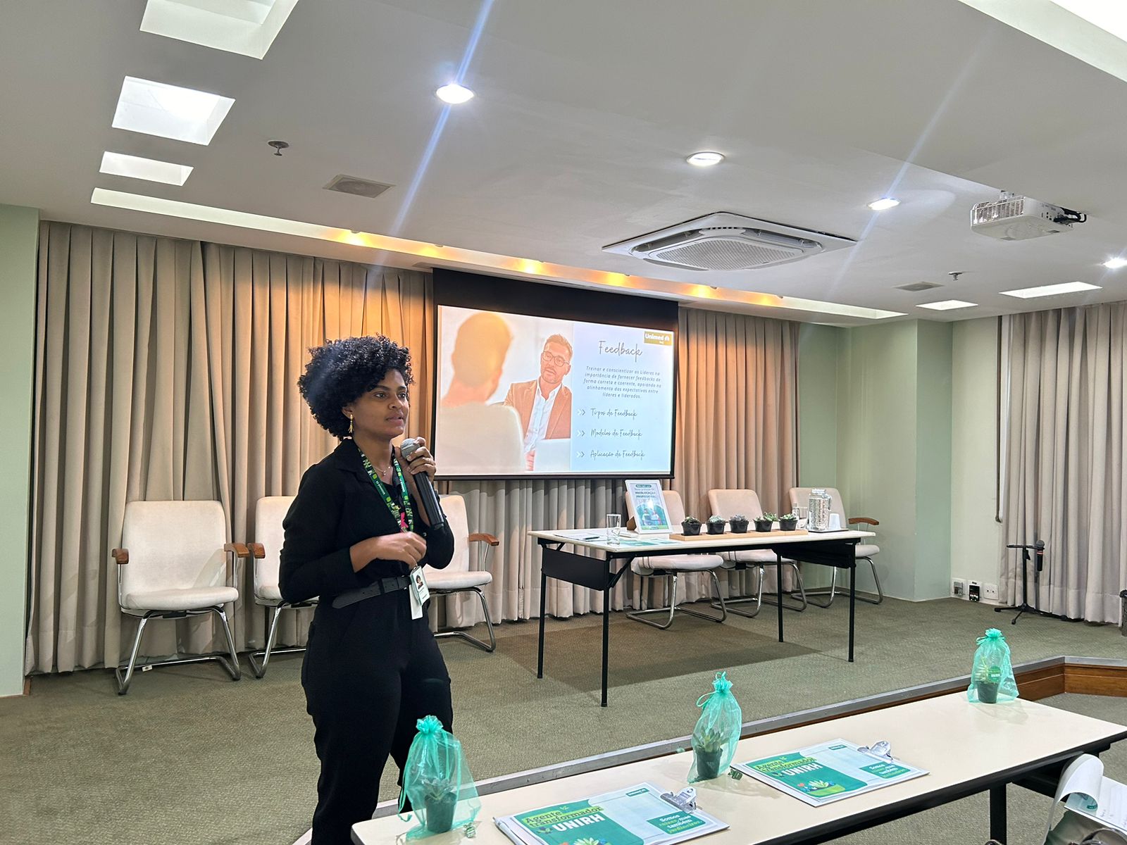 Além disso, a coordenadora de Gente e Gestão, Fabíola Dias, ministrou uma palestra sobre o Hospital Unimed, localizado na Barra da Tijuca, sob a gestão da Unimed Ferj. O analista de GP, Matheus Ataide, também convidou a todos para conhecerem o projeto ‘UniVerso’, um programa em desenvolvimento voltado para inclusão e diversidade. Ao final do encontro, o professor de yoga, Renan Zanotto, apresentou o conceito ’Intuição Ativa’, que se refere à capacidade de perceber e interpretar informações de maneira mais profunda e consciente.