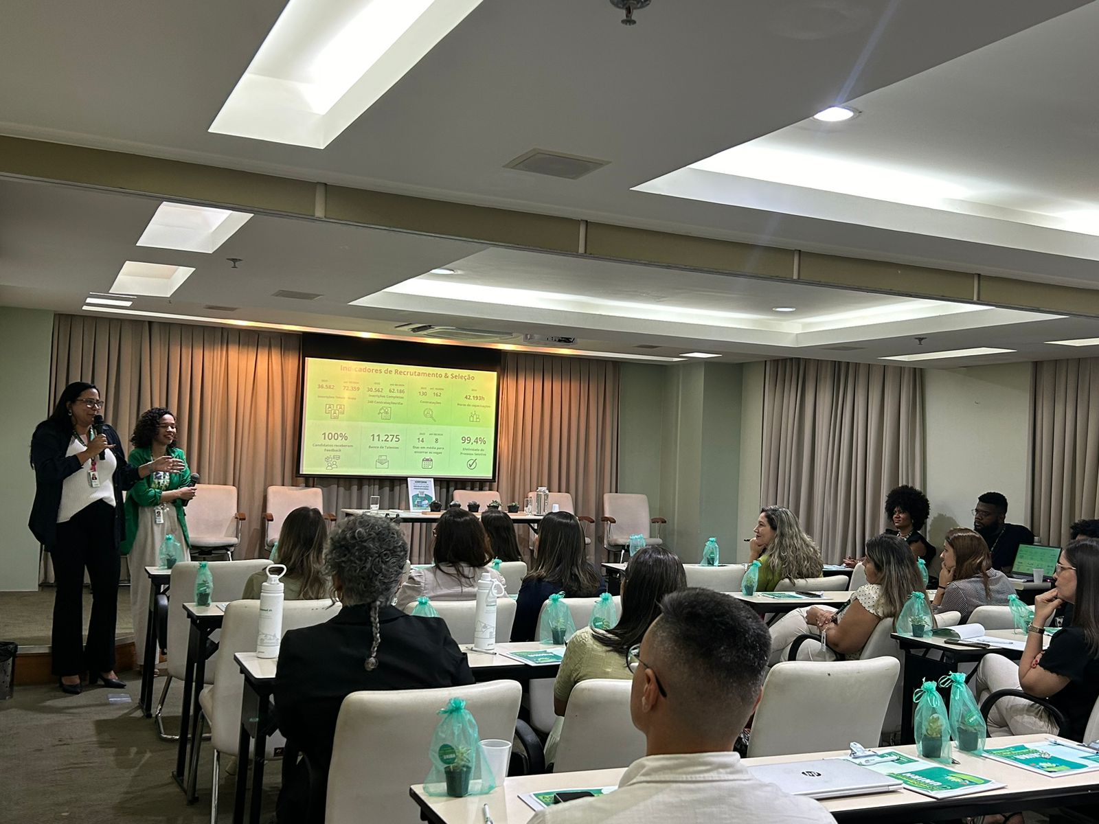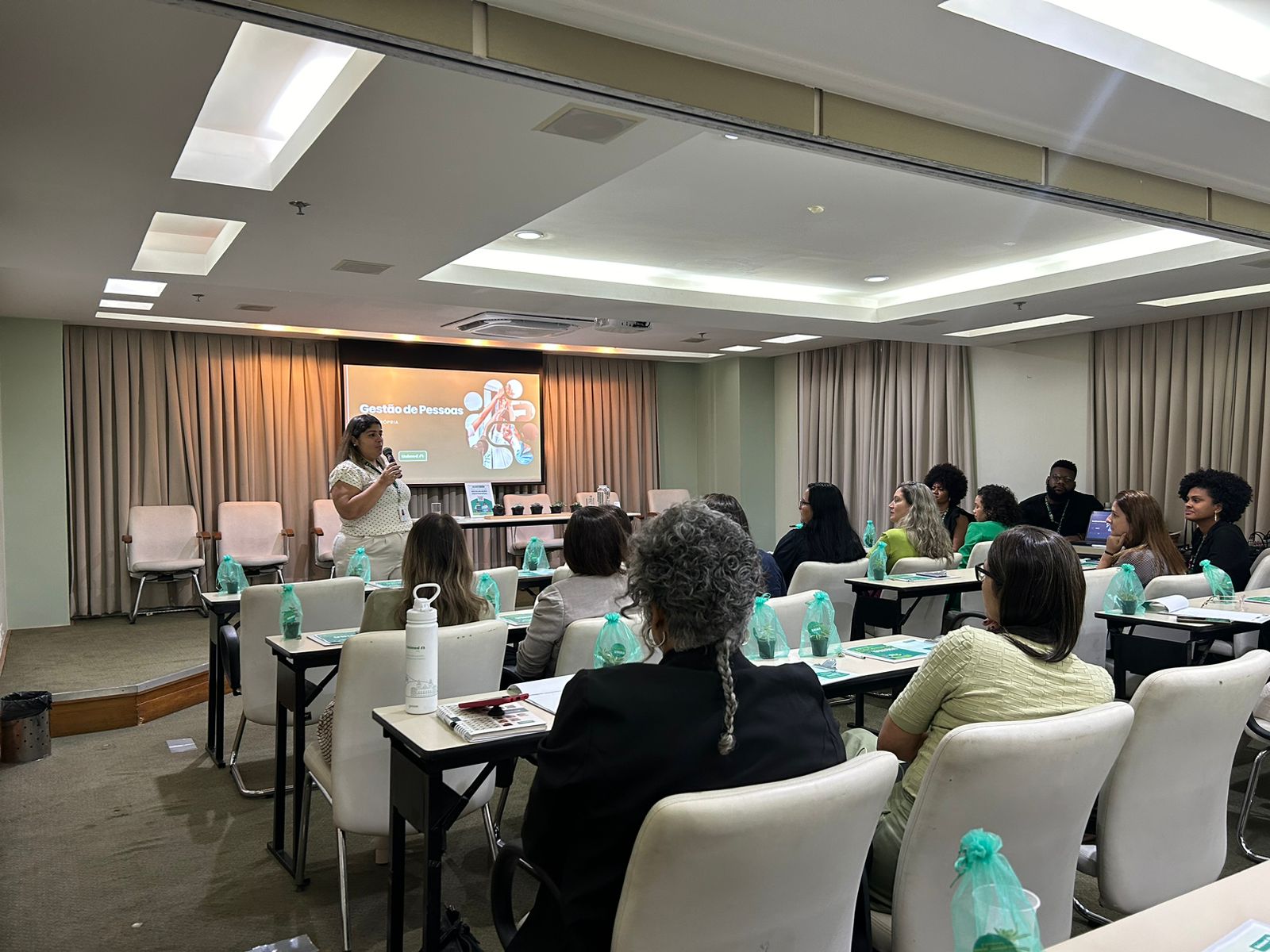 A coordenadora de Gestão de Pessoas, Jéssica Delfino, apresentou a ação interna ‘Agente Transformador’, que engajou mais de 900 colaboradores, reafirmando o compromisso da operadora com a evolução e o crescimento contínuo. As analistas de Gestão de Pessoas, Thaís Andrea Campos e Emanuelle Praxedes, discutiram o Programa de Desenvolvimento de Líderes e iniciativas internas organizadas pelo time.