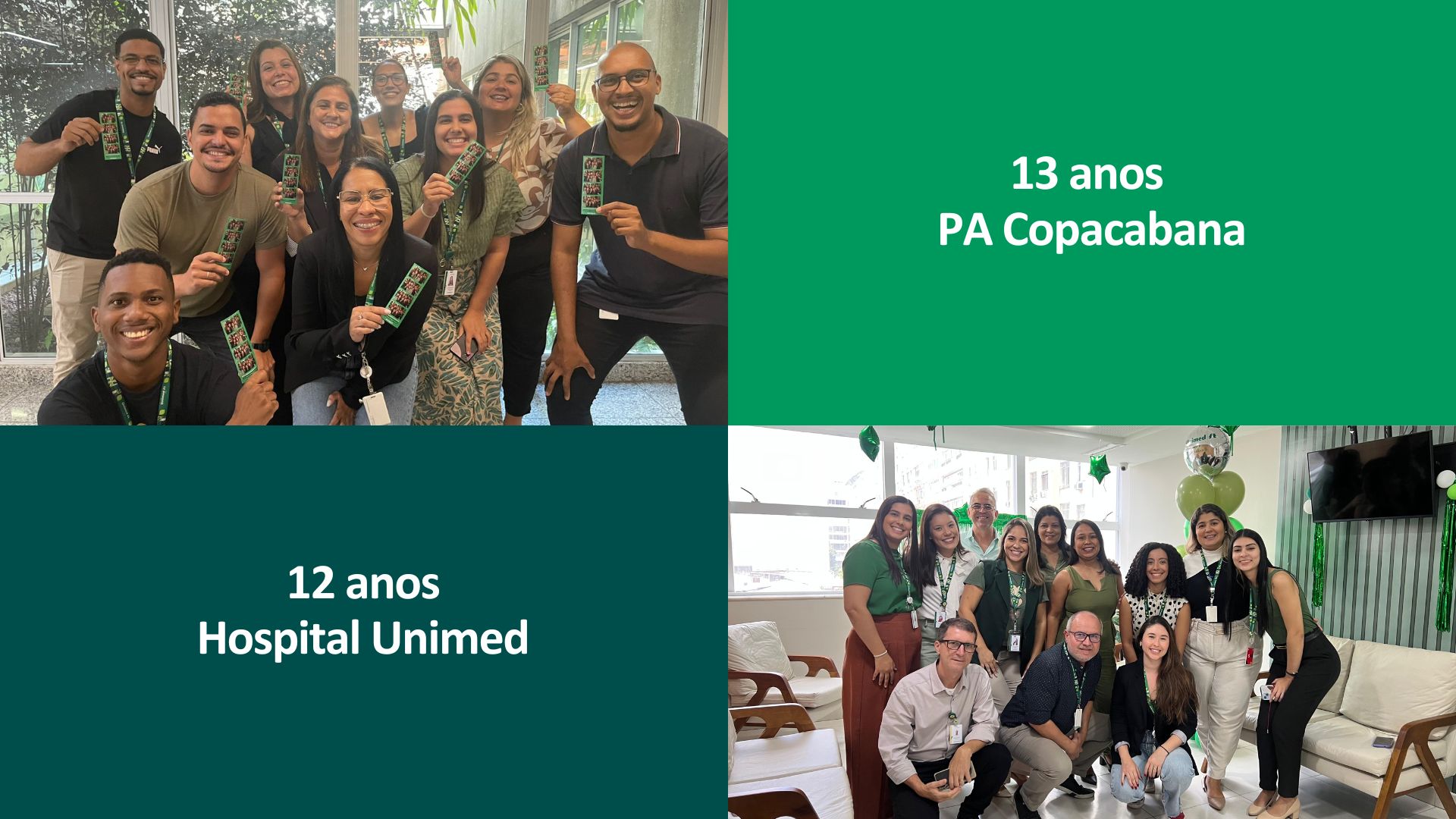 Em paralelo, nosso Pronto Atendimento Copacabana, que também integra o Sistema Unimed, completou 13 anos de dedicação e excelência no atendimento de emergência na Zona Sul do estado, no dia 12 de dezembro. Certificado com o selo ONA II, o PA destaca-se pela excelência em clínica médica, ortopedia e pediatria, além de contar com um complexo tecnológico para exames.