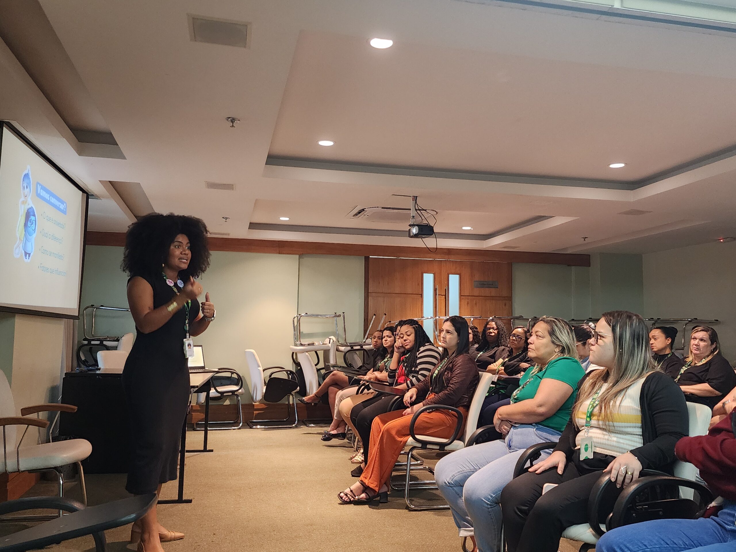 Nas ocasiões, os presentes puderam refletir sobre as diferenças entre ansiedade e transtorno de ansiedade, identificar formas de manifestação e aprender estratégias de acolhimento e boas práticas para cuidar da saúde mental. As colaboradoras conduziram o evento de forma clara e interativa, destacando a importância de reconhecer e acolher os sentimentos. As sessões foram elaboradas de forma lúdica, com o auxílio das emoções do filme Divertida Mente 2, que teve uma reação positiva dos inscritos.