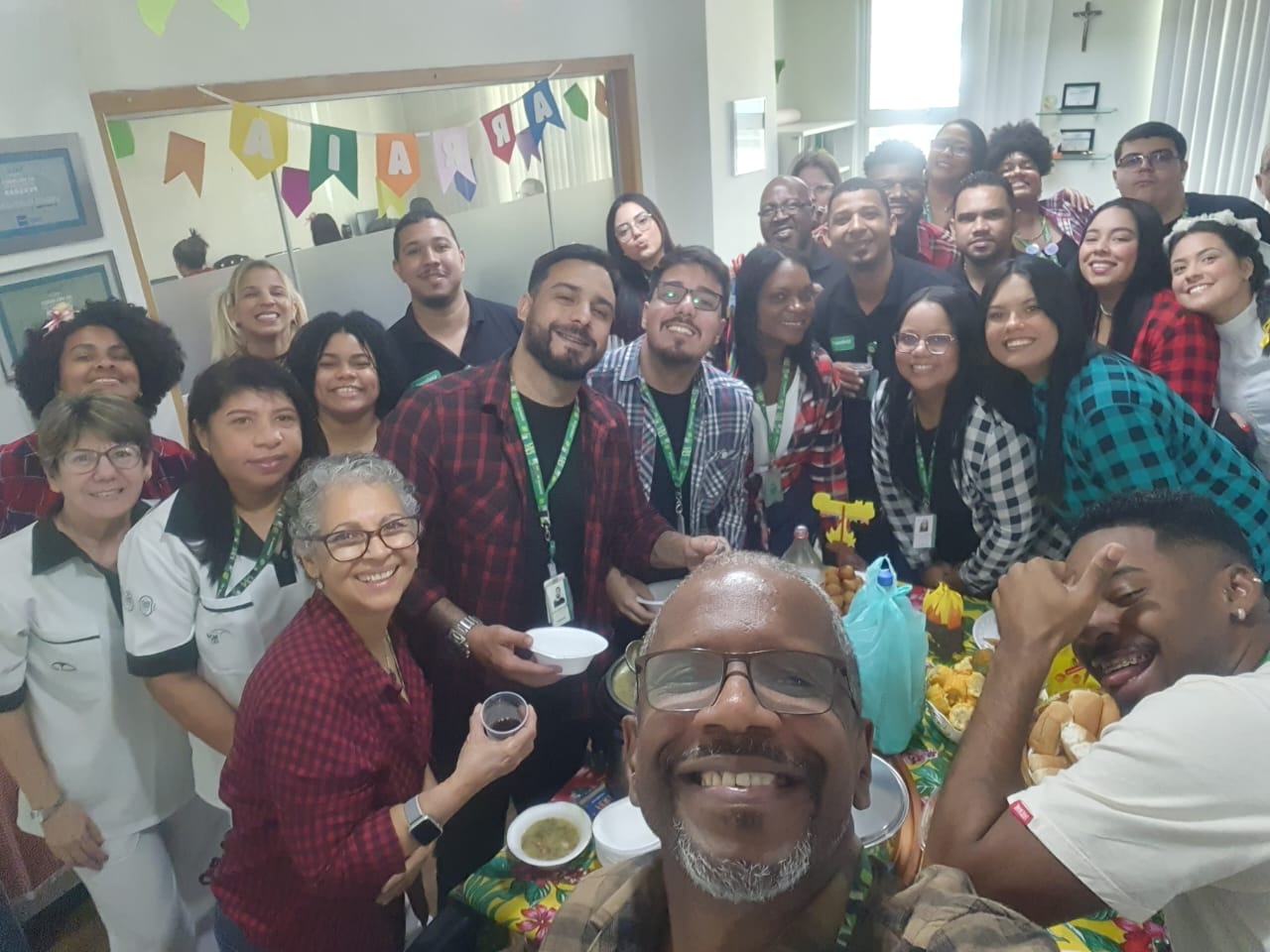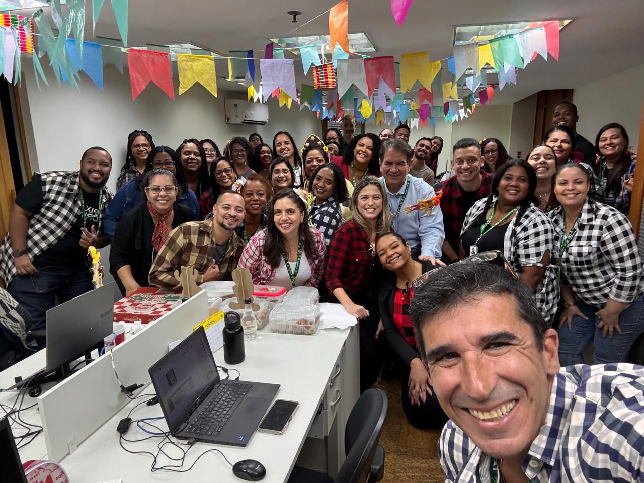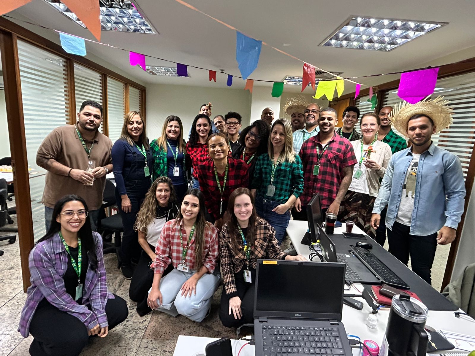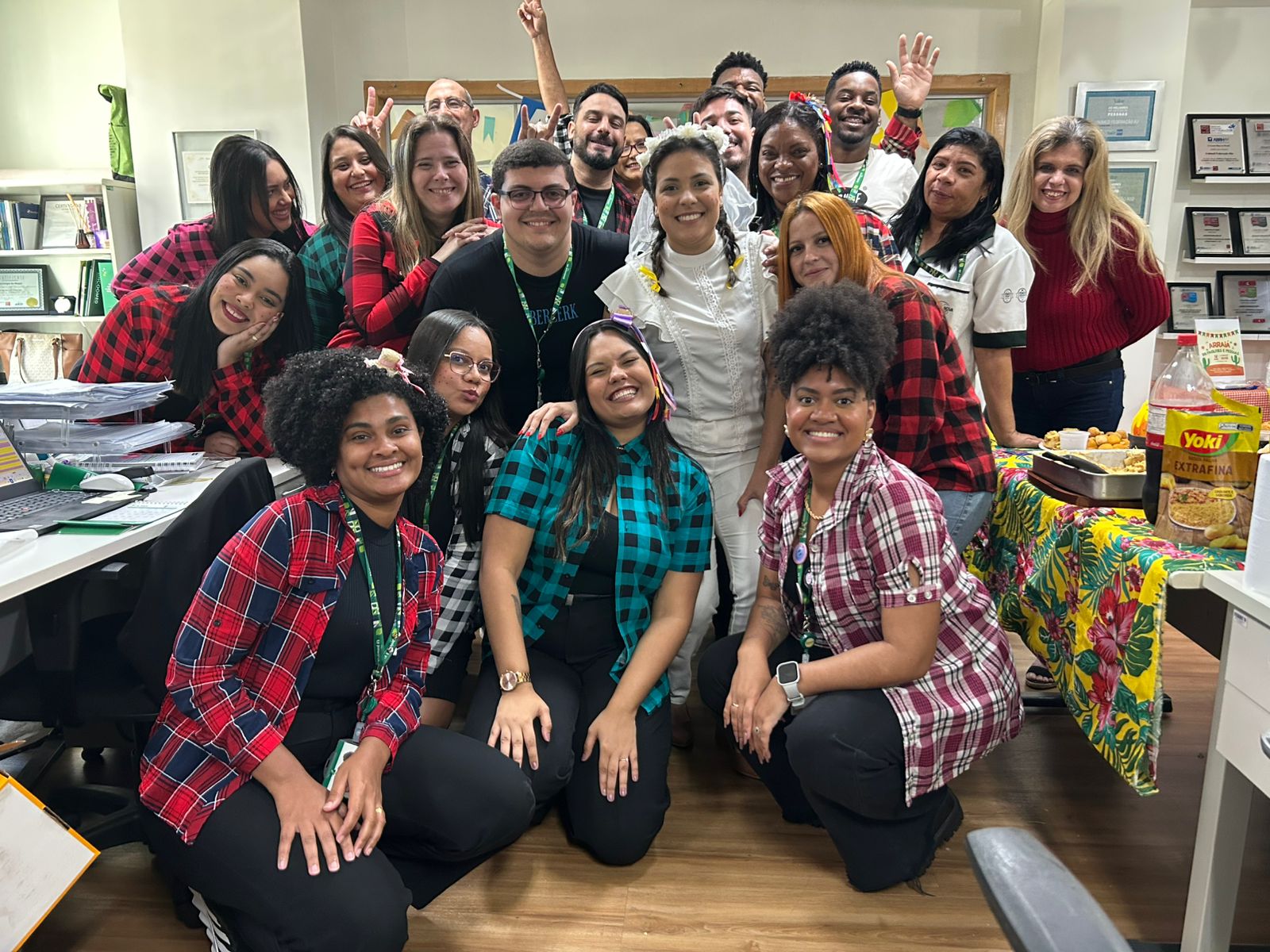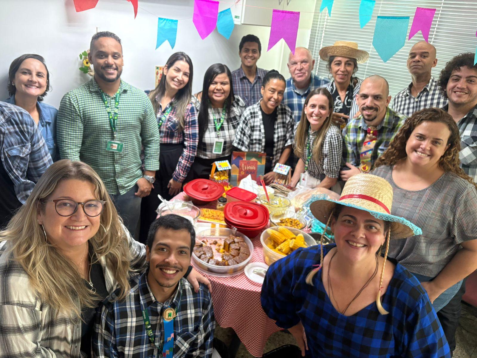 A proposta convidou os colaboradores a organizarem suas próprias confraternizações e o resultado foi uma celebração coletiva cheia de cor, criatividade e integração. Chapéus de palha, camisas xadrez, bandeirinhas e mesas repletas de comidas típicas deram o tom festivo ao dia, reforçando os laços entre as equipes e promovendo um ambiente de leveza e acolhimento.