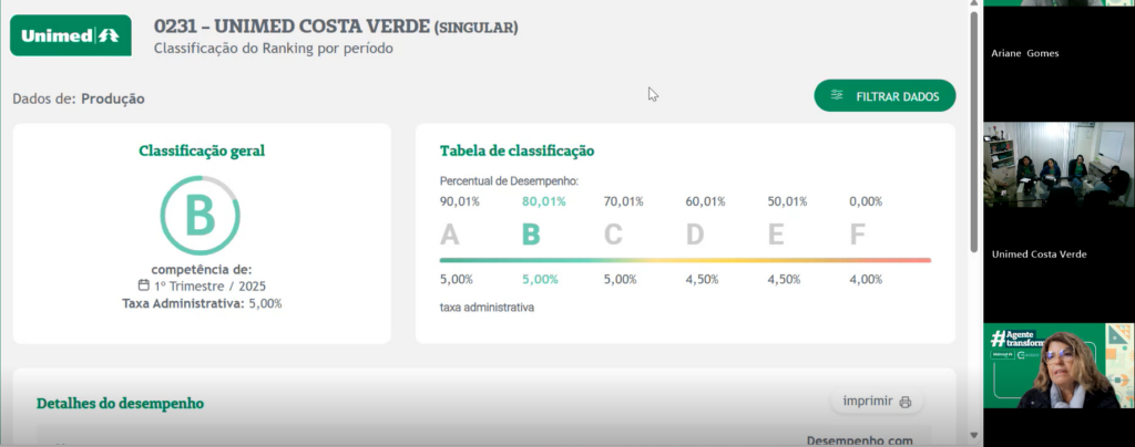 Com foco no aprimoramento da gestão de indicadores e na qualificação dos processos internos, a equipe da Unimed Costa Verde participou de um treinamento conduzido pela analista de Intercâmbio da Unimed Ferj, Renata Madeira. A capacitação, realizada de forma virtual no dia 3 de julho, teve como tema central o grupo de indicador ‘Performance do Processo de Cobrança e Contestação’, que integra o Ranking das Unimeds.