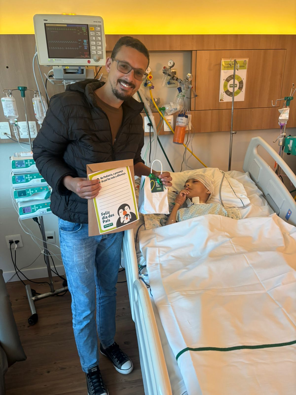Em meio à rotina hospitalar, onde cada gesto carrega esperança e afeto, o Hospital Unimed Ferj encontrou uma forma delicada de homenagear aqueles que, mesmo diante dos desafios, seguem sendo porto seguro para seus filhos: os pais. No dia 8 de agosto, uma ação especial foi promovida pelas equipes de Nutrição e Pediatria, contemplando 60 pais, entre acompanhantes de pacientes pediátricos e papais internados na ala adulta, com carinho, atenção e acolhimento.