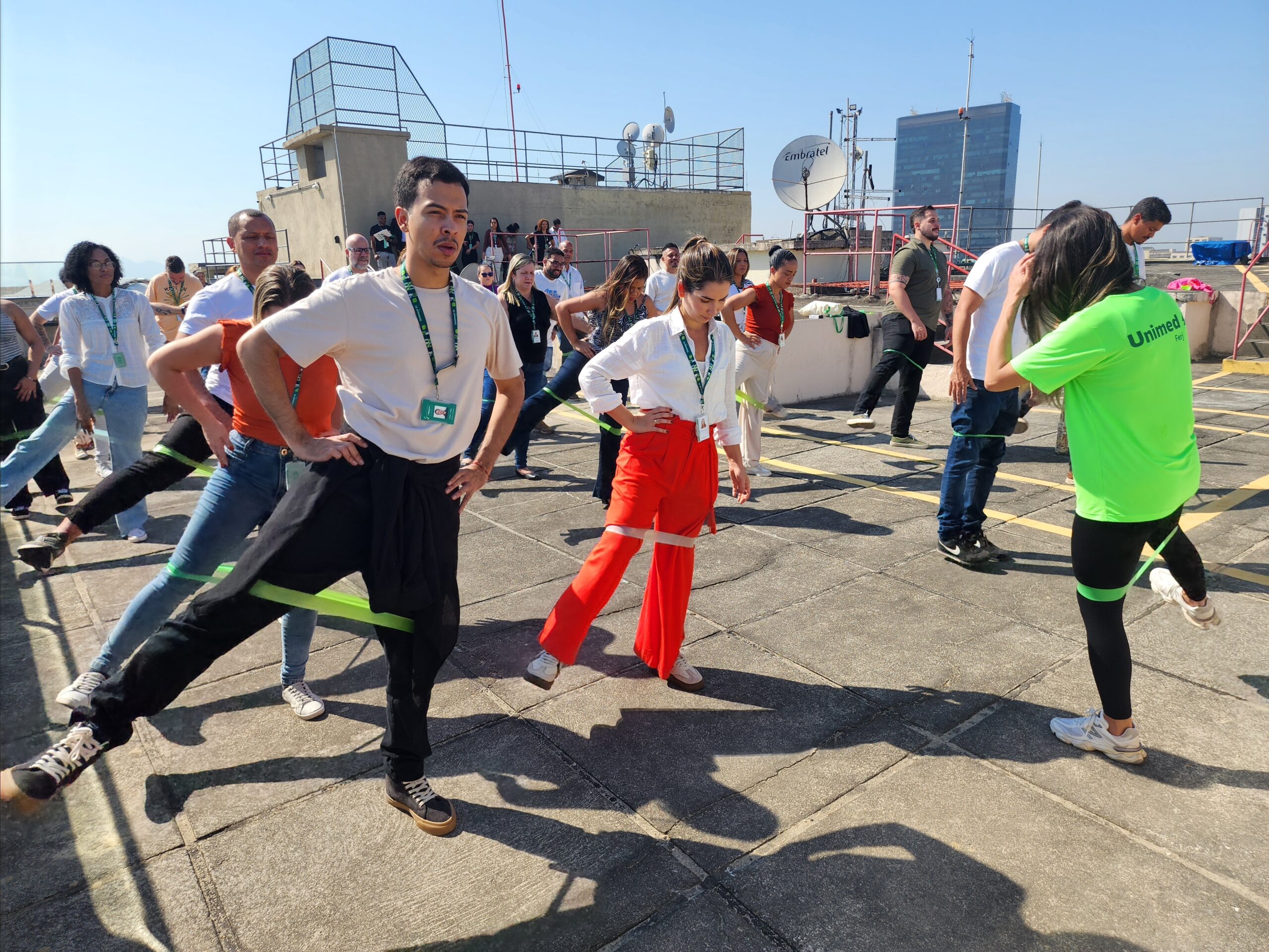 Em comemoração aos 53 anos da Unimed Ferj, a equipe de Gestão de Pessoas organizou, na semana passada, uma programação especial voltada ao cuidado com os colaboradores, que são parte essencial da trajetória da cooperativa. Com momentos de descontração, relaxamento e cuidados à saúde, mais de 250 pessoas participaram das atividades do Mude1Hábito — programa que incentiva escolhas saudáveis e promove qualidade de vida — conduzidas pela fisioterapeuta Cintia Barreiros, na sede administrativa, no Centro do Rio.