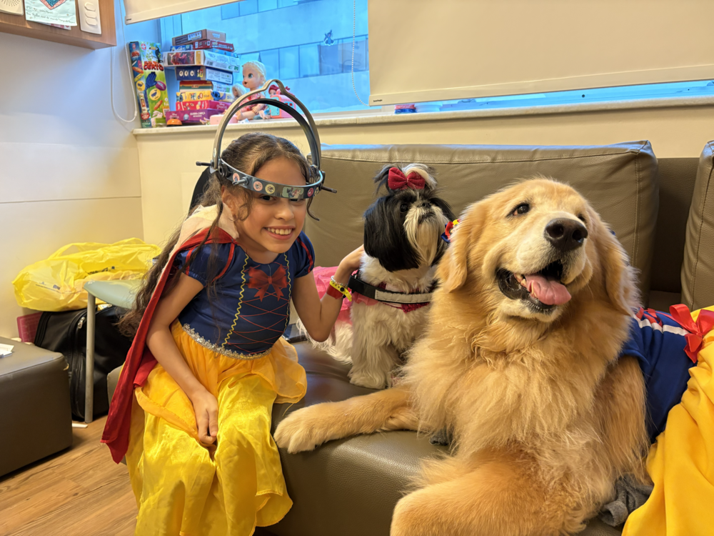 No dia 8 de outubro, o Complexo Pediátrico do Hospital Unimed Ferj viveu um dia repleto de amor, alegria e emoção com a visita das cadelas terapeutas Lua e Lua de Cristal, do projeto TEAcolhe, da Universidade Estadual do Rio de Janeiro (UERJ). A ação de cão terapia, realizada em comemoração ao Dia das Crianças, levou momentos de descontração e acolhimento aos pequenos pacientes e seus familiares, reforçando o compromisso da instituição com o cuidado humanizado e integral.