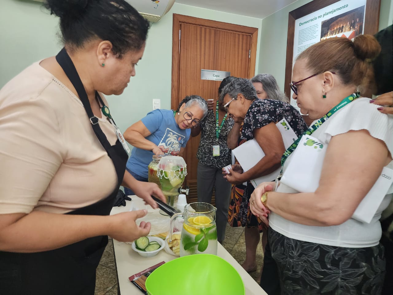 A Dona Maria do Carmo, avó da auxiliar Financeiro da área de Operações Econômicas e Financeiras, Tayssa Ferreira, elogiou a iniciativa. “Achei muito bom esse encontro. Conheci os colegas de trabalho da minha neta, e isso é muito importante para mim. Conheci também outros familiares encontrando aqui pessoas que tem coisas em comum na vida. Eu gostei muito e fiquei bem à vontade. A oficina foi muito boa e o lanche estava uma delícia. Aprendemos muito, inclusive segurei a receita e tentarei fazer a água saborizada com os meus netos. Obrigada por isso, foi bom estar aqui com a minha neta, que é a minha vida”, declarou.