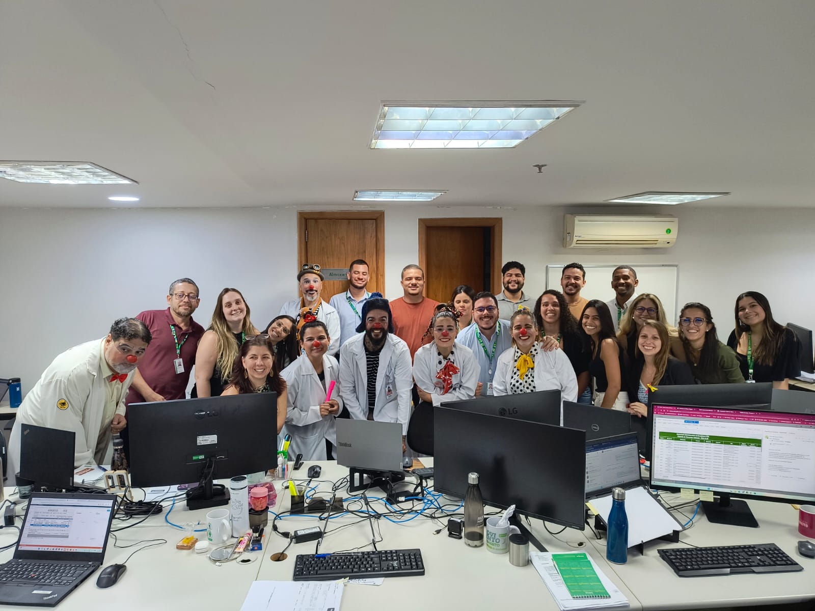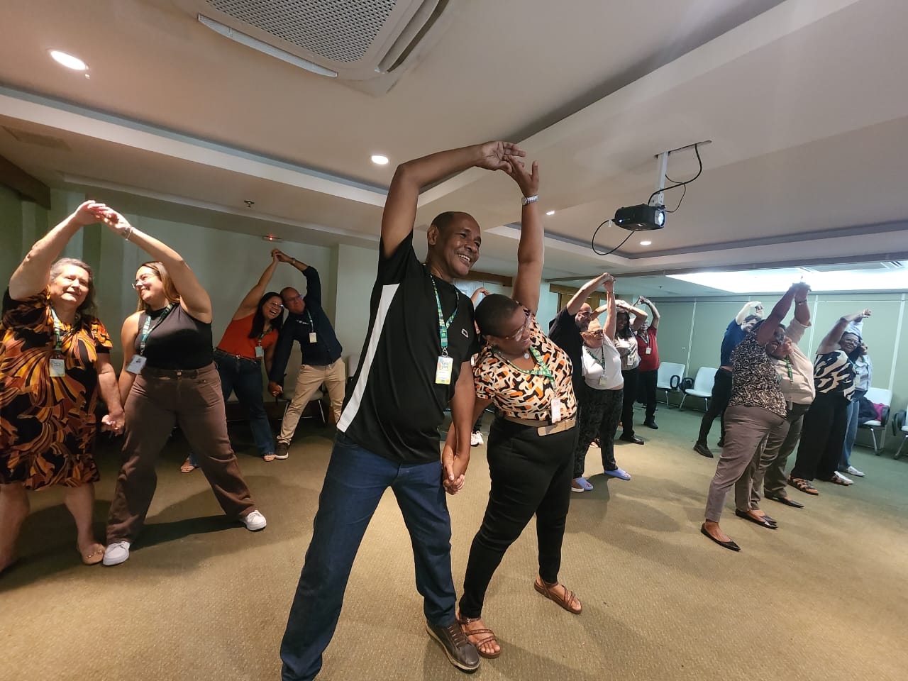 Ao longo da programação, a fisioterapeuta da operadora, Cintia Barreiros, realizou uma aula de alongamento com os dois grupos, com o objetivo de relaxar e melhorar a consciência corporal dos participantes. O cronograma foi planejado para estimular a criatividade e promover a interação. Uma novidade desta edição, foi a visita da Trupe CuradoRia, grupo de palhaçaria, que quinzenalmente visita o Hospital Unimed Ferj, e prestigiou nosso evento brincando com as crianças e adolescentes, percorrendo os setores e interagindo com os colaboradores.