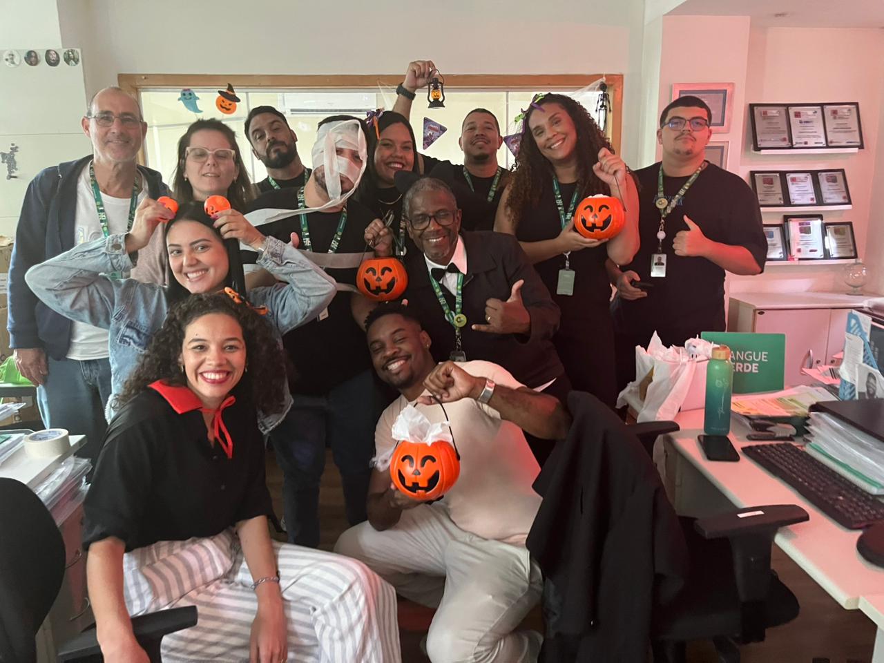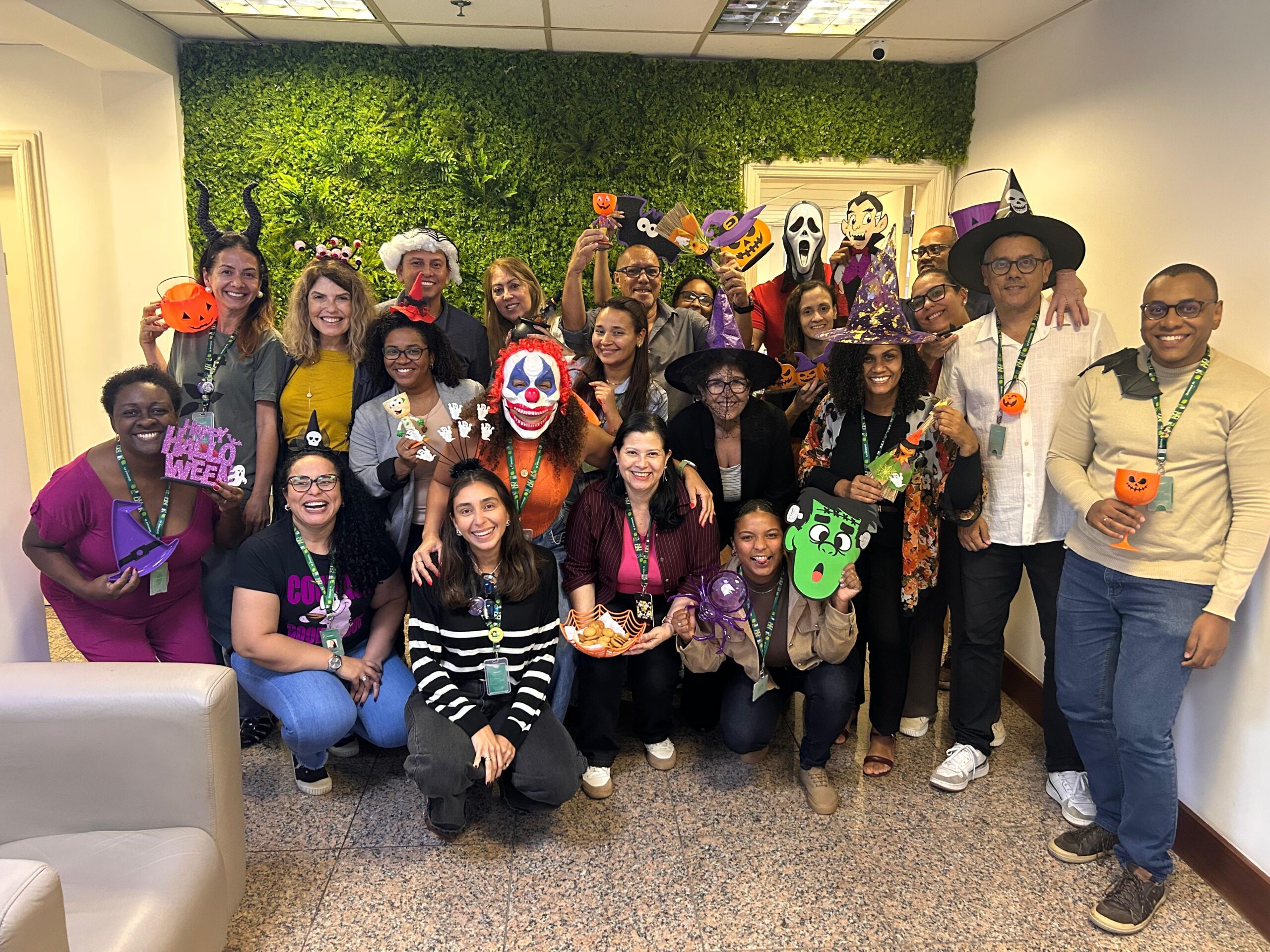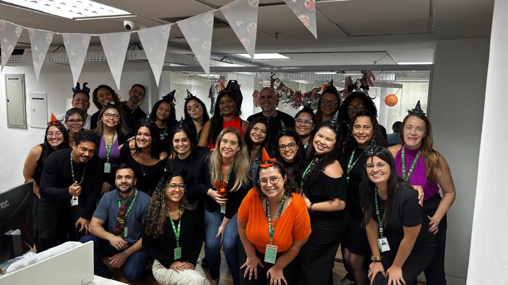 No dia 31 de outubro, as áreas da Unimed Ferj se encheram de cores, fantasias e alegria para celebrar o Halloween. A proposta, lançada em um convite interno, incentivou as equipes a darem um toque de criatividade aos ambientes de trabalho, com decoração temática, doces compartilhados e adereços divertidos.