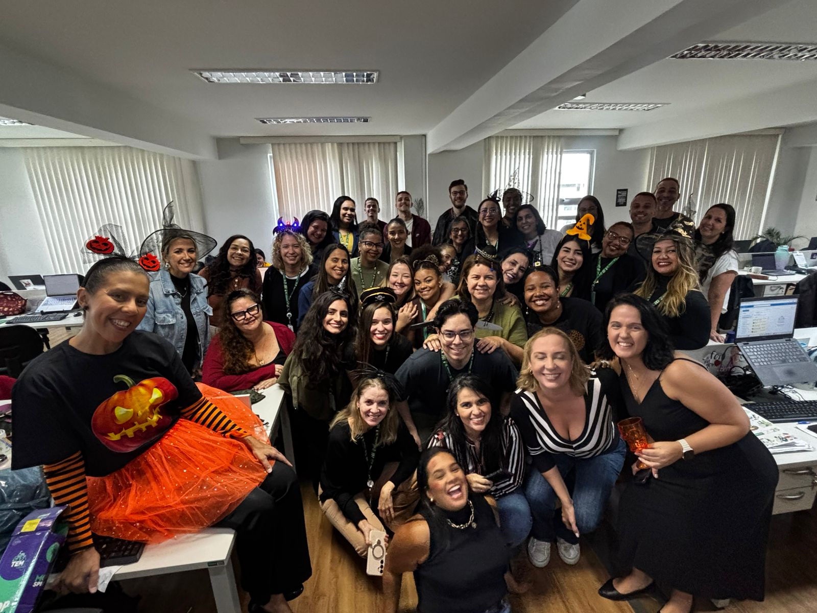 A adesão foi animada com corredores e estações de trabalho ganhando teias de aranha, abóboras, bruxas, fantasmas e uma visita da equipe de Gestão de Pessoas, que distribuiu doces ou travessuras. A ação promoveu integração entre as equipes, estimulando o espírito colaborativo e o bom humor no dia a dia.