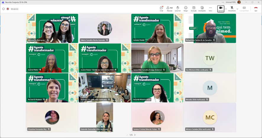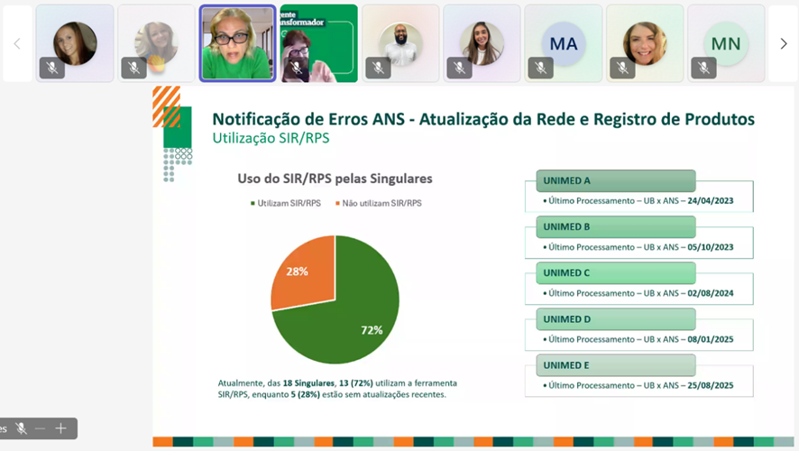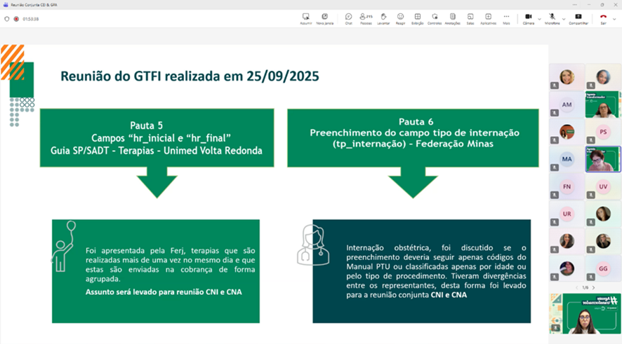 Também em formato virtual, no dia 14 de novembro, a Unimed Ferj reuniu cerca de 215 representantes das Singulares fluminenses na Reunião Conjunta do CEI e GPA. O encontro abordou temas estratégicos para as operações de Intercâmbio, com destaque para a apresentação do status dos projetos em andamento e para o novo indicador do Prêmio Melhores Práticas (PMP) de 2026.