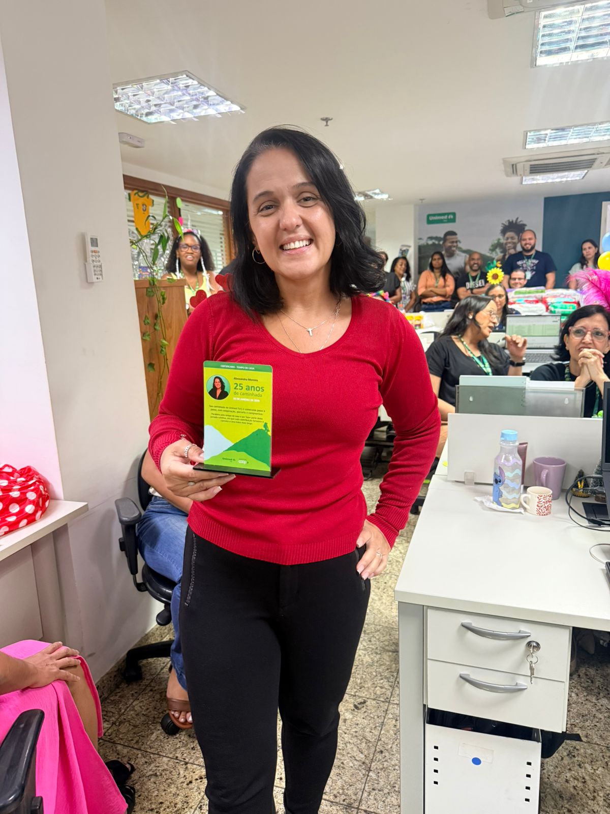 Ao todo, seis colaboradores foram contemplados. Completando 10 anos de atuação na cooperativa, foram homenageados Lise Cerqueira, da Gestão de Saúde e Recursos Próprios, Leidiane Maria, da Gestão de Relacionamento, e Victor Leonardo, do Tecnologia da Informação. Leyslye Ribeiro e Maria Cláudia, ambas da Gestão de Relacionamento, receberam a distinção pelos 15 anos de casa. Já Alessandra Moreira, da Gestão de Rede, foi reconhecida pelos 25 anos de contribuição à Unimed Ferj, marco que evidencia uma trajetória de compromisso e parceria construída ao longo de décadas.